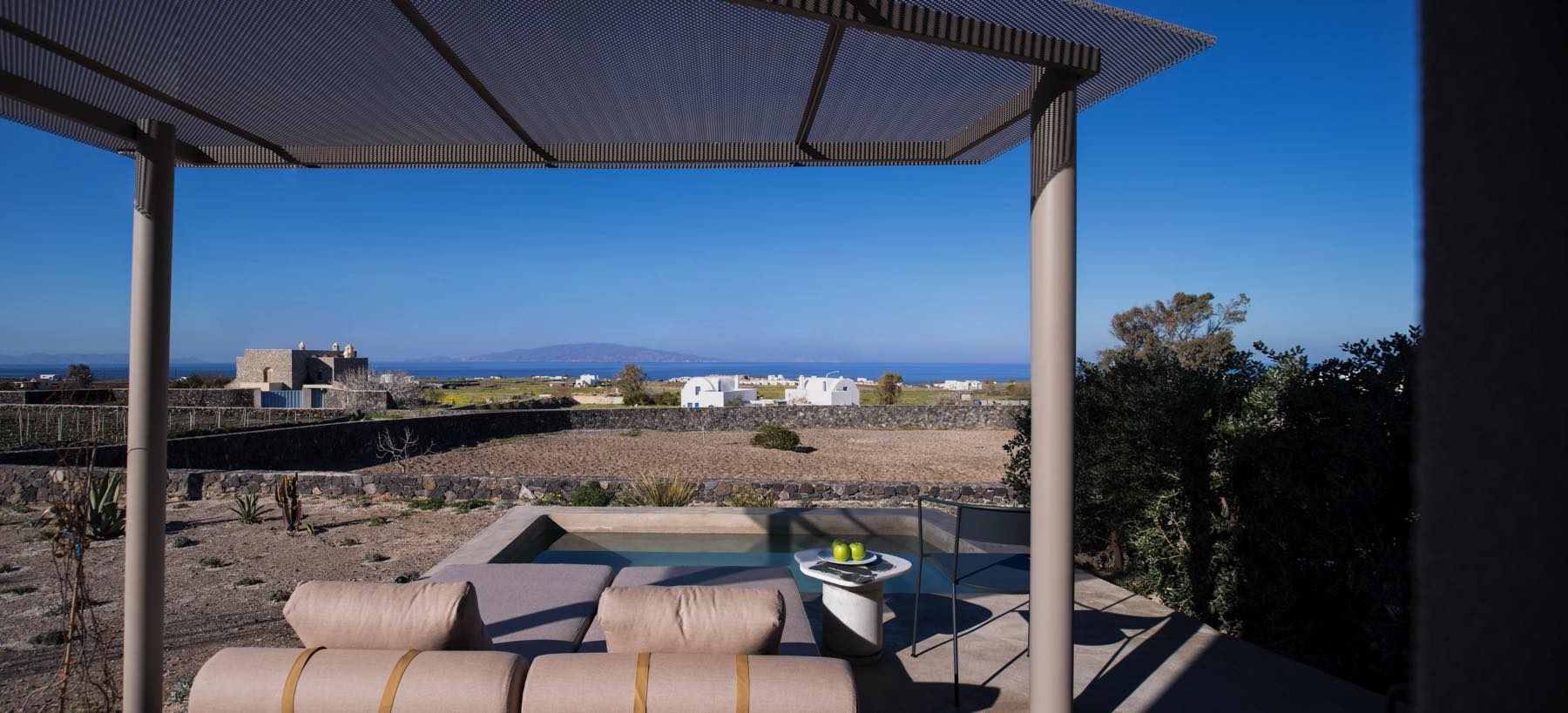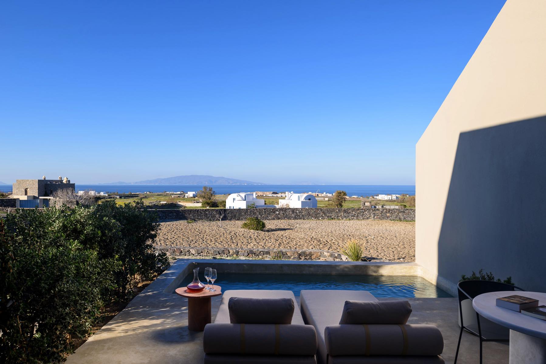 The Opal Suite invites its 2 guests to disconnect and treat themselves to a tale of true island emotions. Modern comforts and delicate luxuries meet Santorini’s breathtaking nature in a hideaway inspired by the colours of the Mediterranean summer. This suite features a sumptuous, open-plan double bedroom and a sleek, modern bathroom, while the furnished terrace provides dreamy views over the Aegean Sea. To add to the entire experience a dash of extra indulgence, the Opal suite boasts a beautiful plunge pool for restorative me-time alfresco. Can you hear the breeze whispering slowly? The perfect escape awaits.